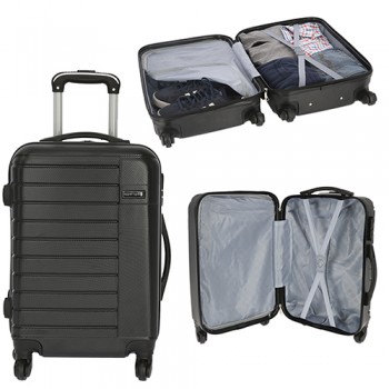 Anterior Siguiente RONY Maleta de plástico para viaje, con ruedas giratorias, asa metálica retráctil y candado de seguridad Clave: 011TXT028 MEDIDAS: 36.0 x 50.0 cm MATERIAL: PLASTICO TÉCNICA DE IMPRESIÓN RECOMENDADA: TAMPOGRAFÍA ÁREA DE IMPRESIÓN: 8 x 2 cm PESO CAJA MASTER: 10 MEDIDAS CAJA MASTER: 56 x 76 x 46 PIEZAS POR CAJA MASTER: 4